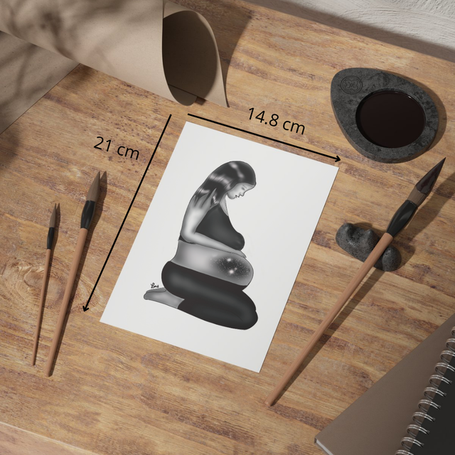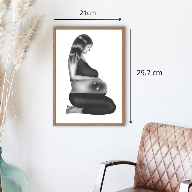 Une illustration de femme enceinte en noir et blanc